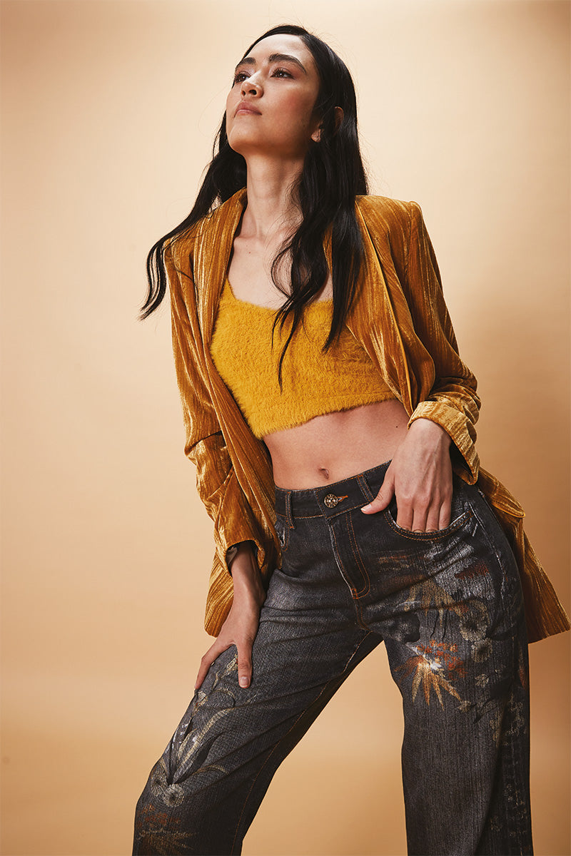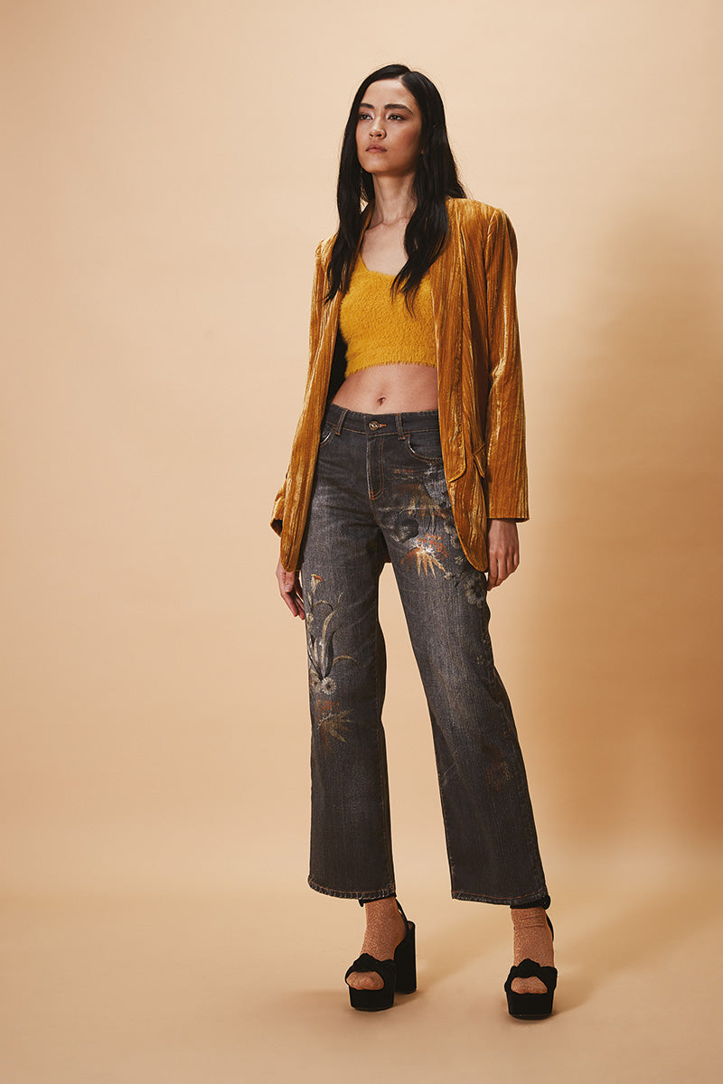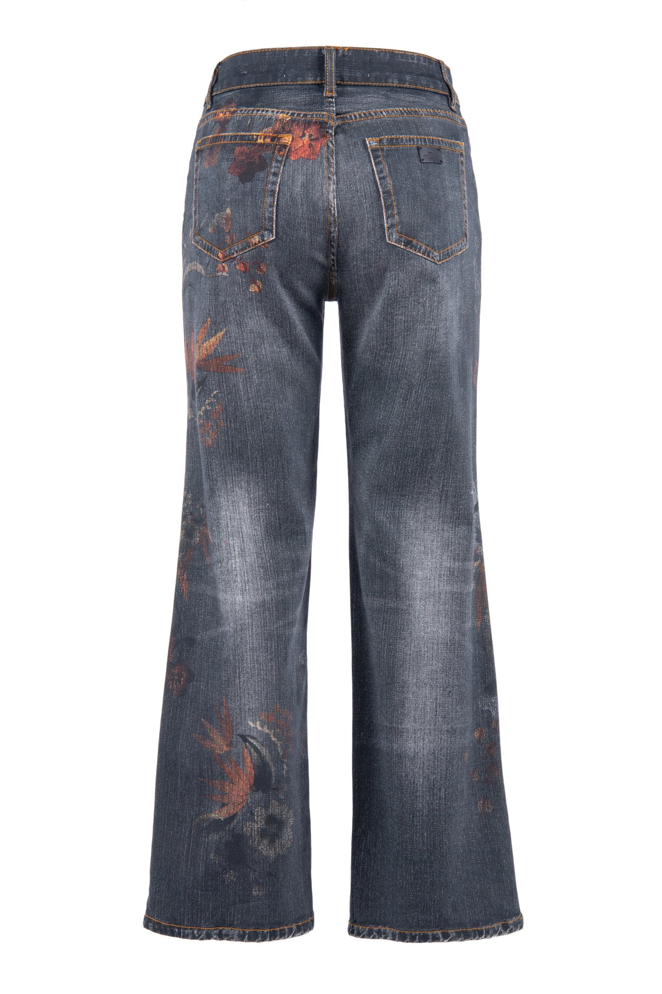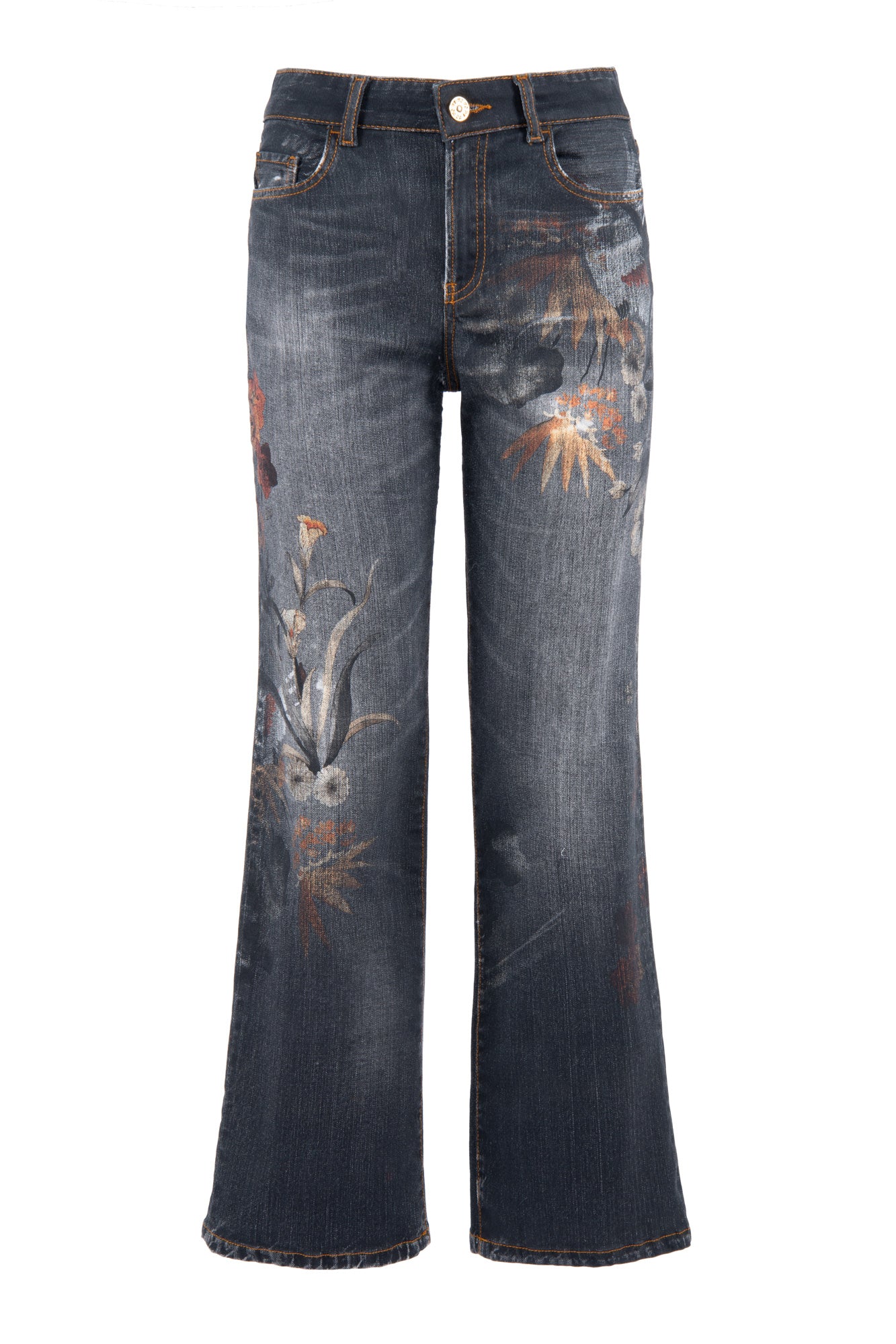 Jeans tinto in capo a gamba dritta con stampa di fiori orientali.